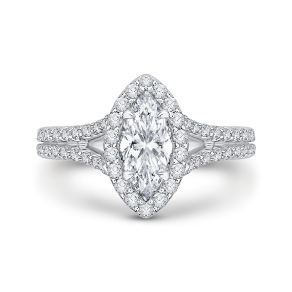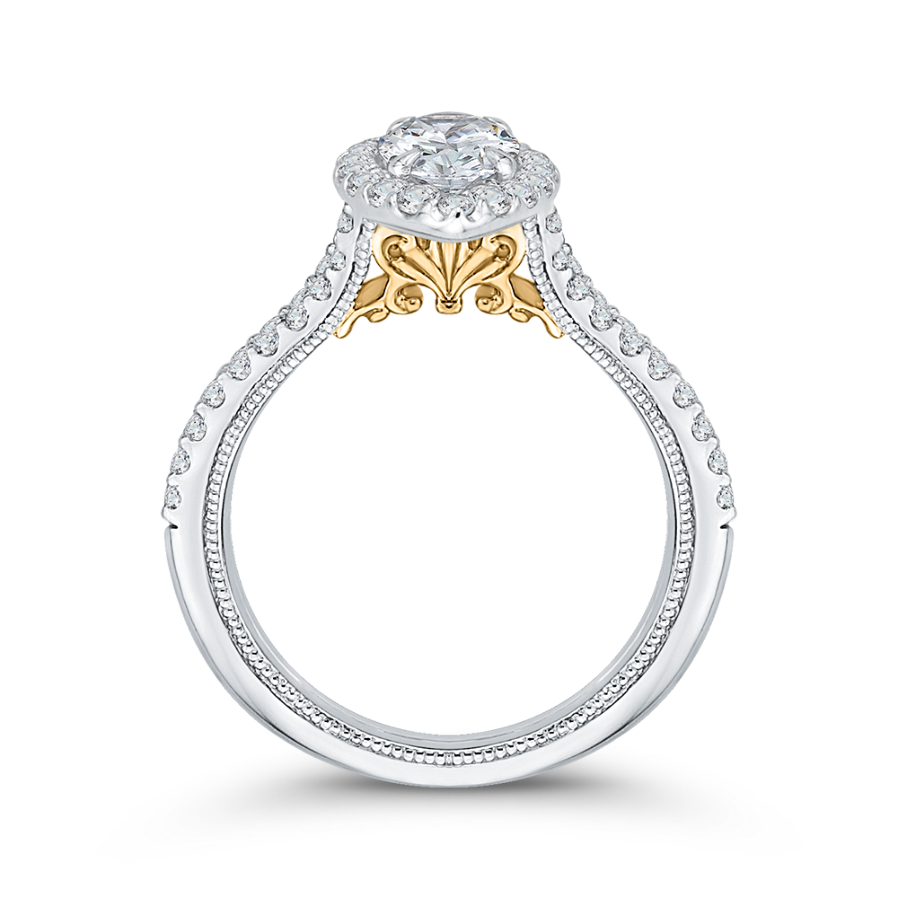 14K Two-Tone Gold Marquise Diamond Halo Vintage Engagement Ring with Split Shank (Semi-Mount)