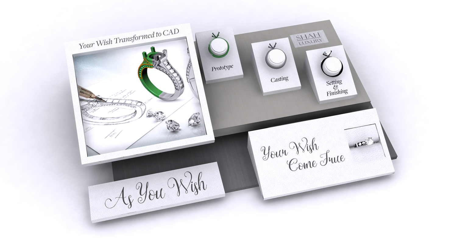 "We look forward to working with you and walking you through the easiest process you could imagine. From start to finish of the approved CAD, you can have your piece in as little as 2 weeks. Shall we get started? Well, "As You Wish"!