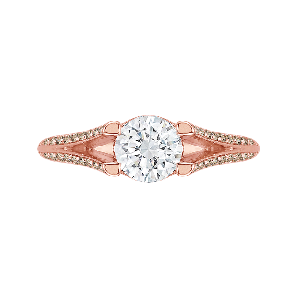 14K Rose Gold Brown Diamond Engagement Ring with Split Shank (Semi-Mount)