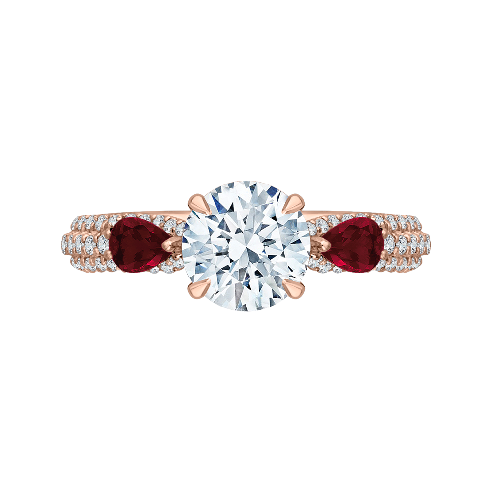 14K Rose Gold Round Diamond and Ruby Engagement Ring (Semi-Mount)
