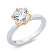 14K Two Tone Gold Diamond Decoro Six-Prong Solitaire Ring (Semi-Mount)