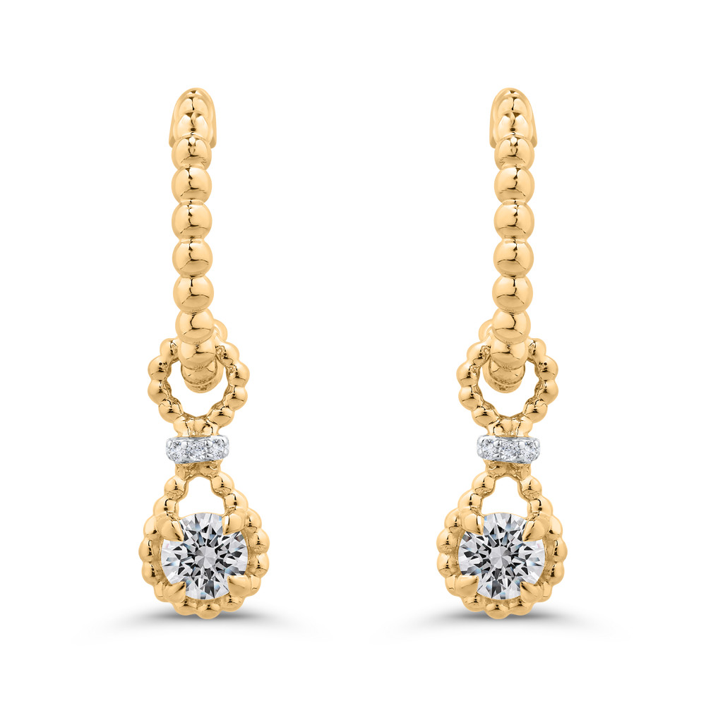 14K Two Tone Gold Diamond Perline Beaded Drop Earrings
