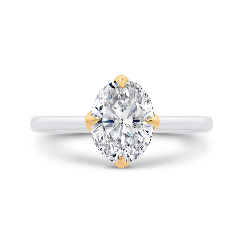 14K Two Tone Gold Oval Cut Diamond Decoro Solitaire Ring (Semi-Mount)