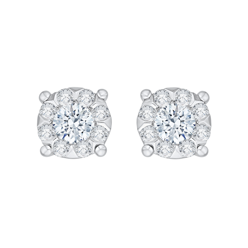 14K White Gold 1 .09 Ct Diamond Lecirque Studs Earrings
