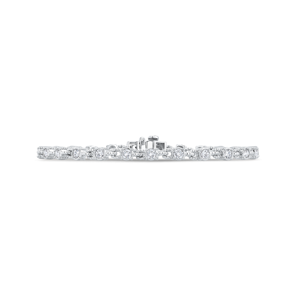 14K White Gold Diamond Perline Beaded Accent Line Bracelet