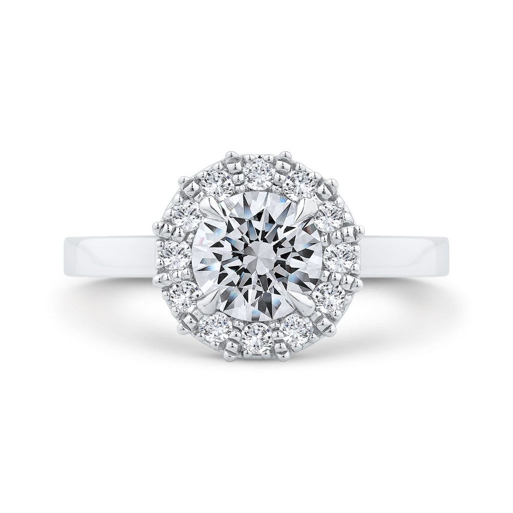 14K White Gold Diamond Perline Solitaire Beaded Halo Engagement Ring (Semi-Mount)
