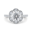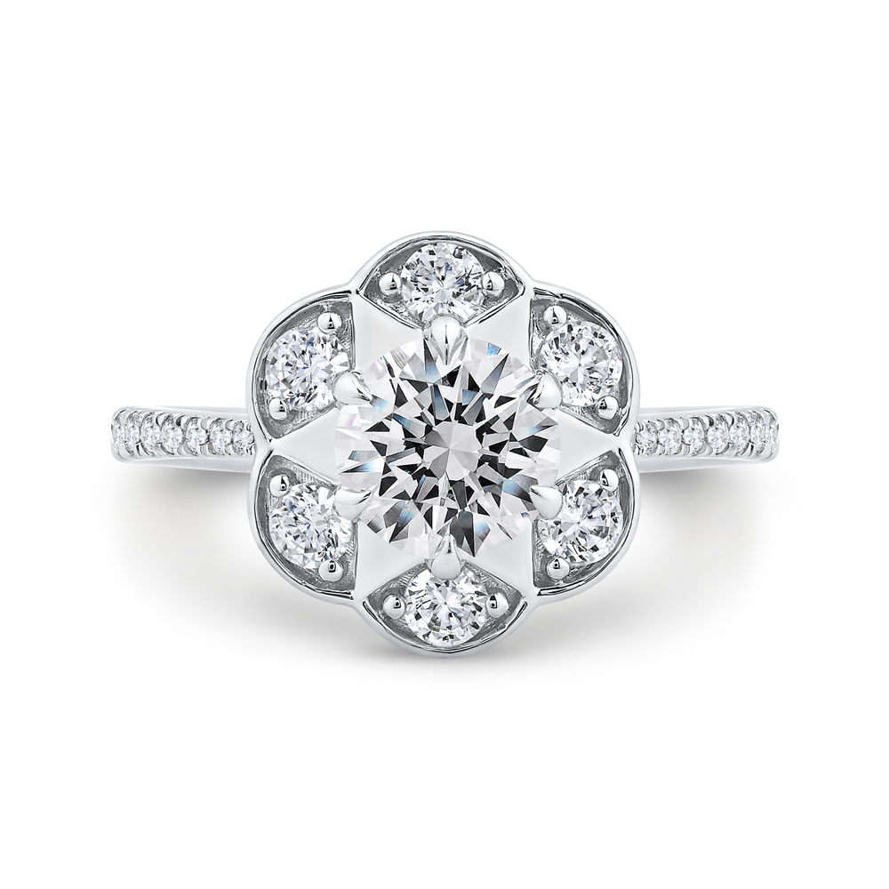 14K White Gold Diamond Stella Solitaire Halo Pave Flow-Through Ring (Semi-Mount)