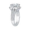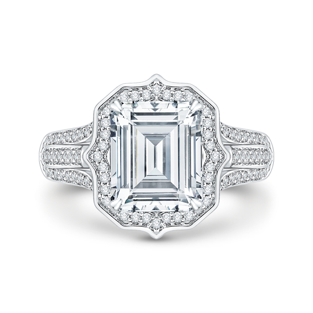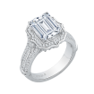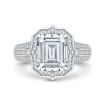 14K White Gold Emerald Cut Diamond Halo Engagement Ring (Semi-Mount)