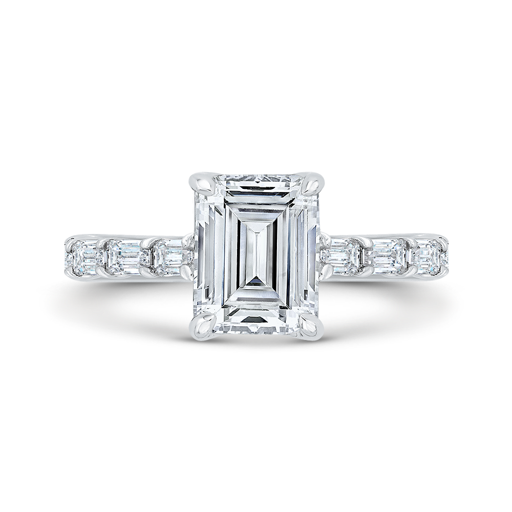 14K White Gold Emerald Cut Diamond Solitaire Plus Engagement Ring (Semi-Mount)