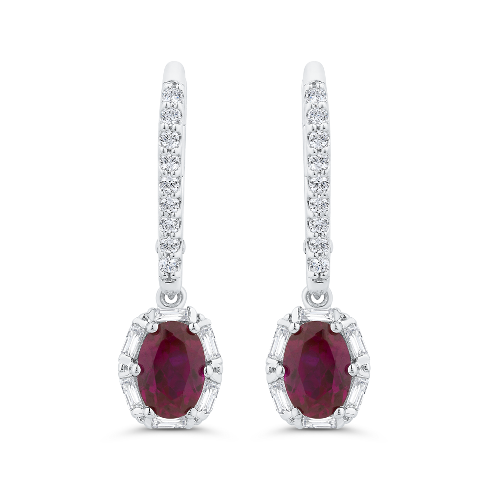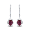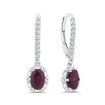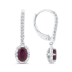 14K White Gold Pronge Set Diamond Leverback Earrings with Center Ruby