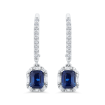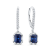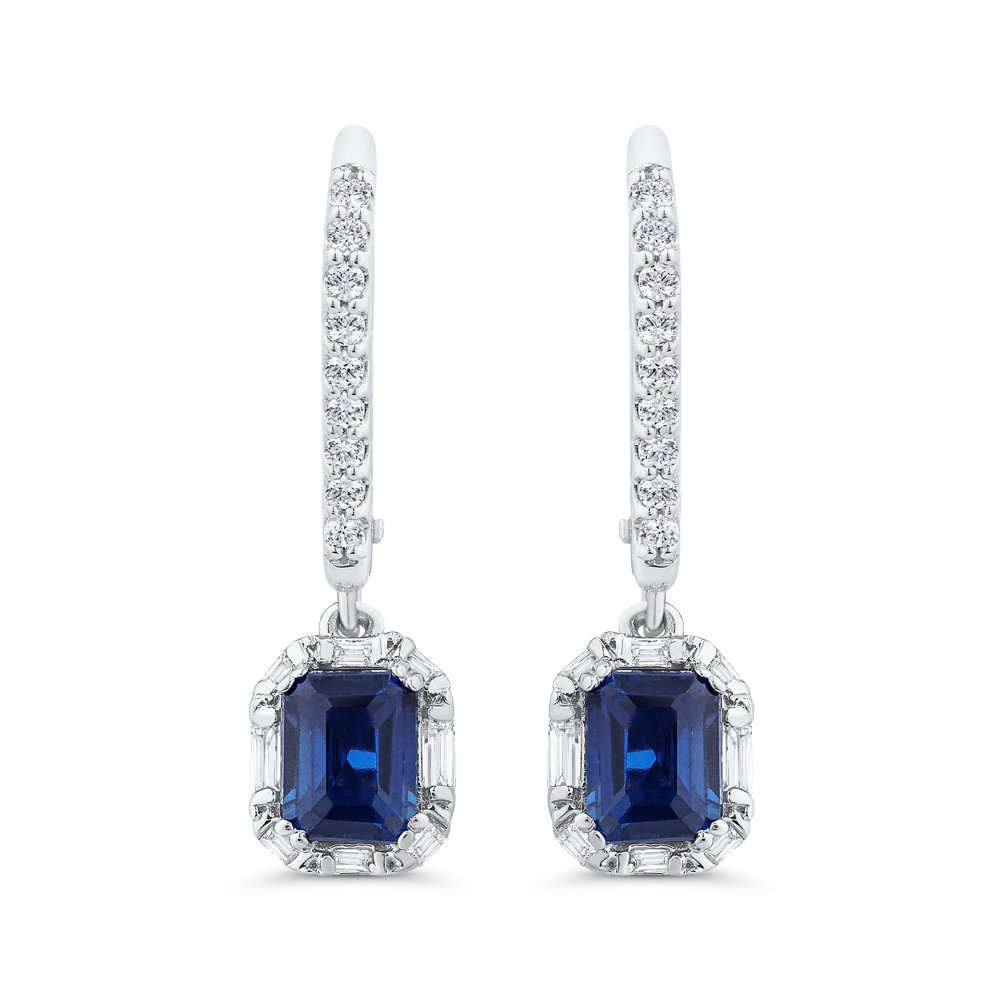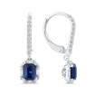 14K White Gold Pronge Set Diamond Leverback Earrings with Center Sapphire
