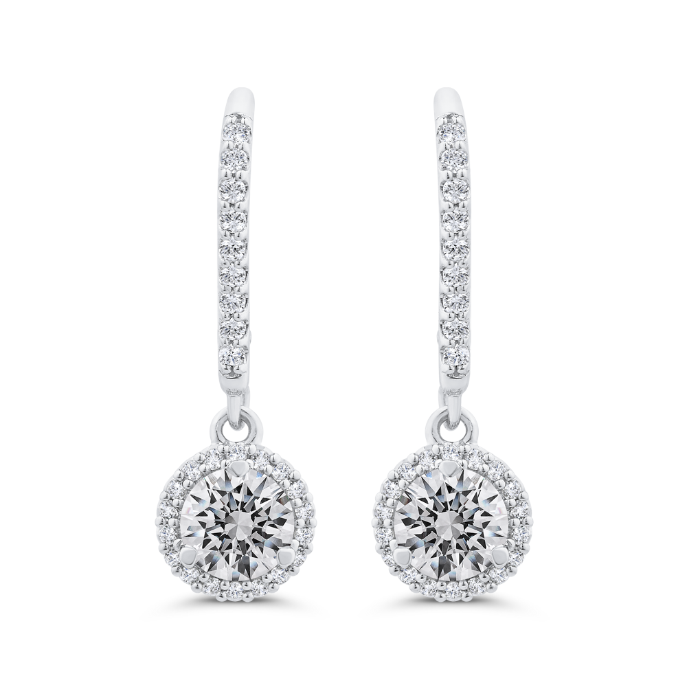 14K White Gold Pronge Set Diamond with Leverback Earrings
