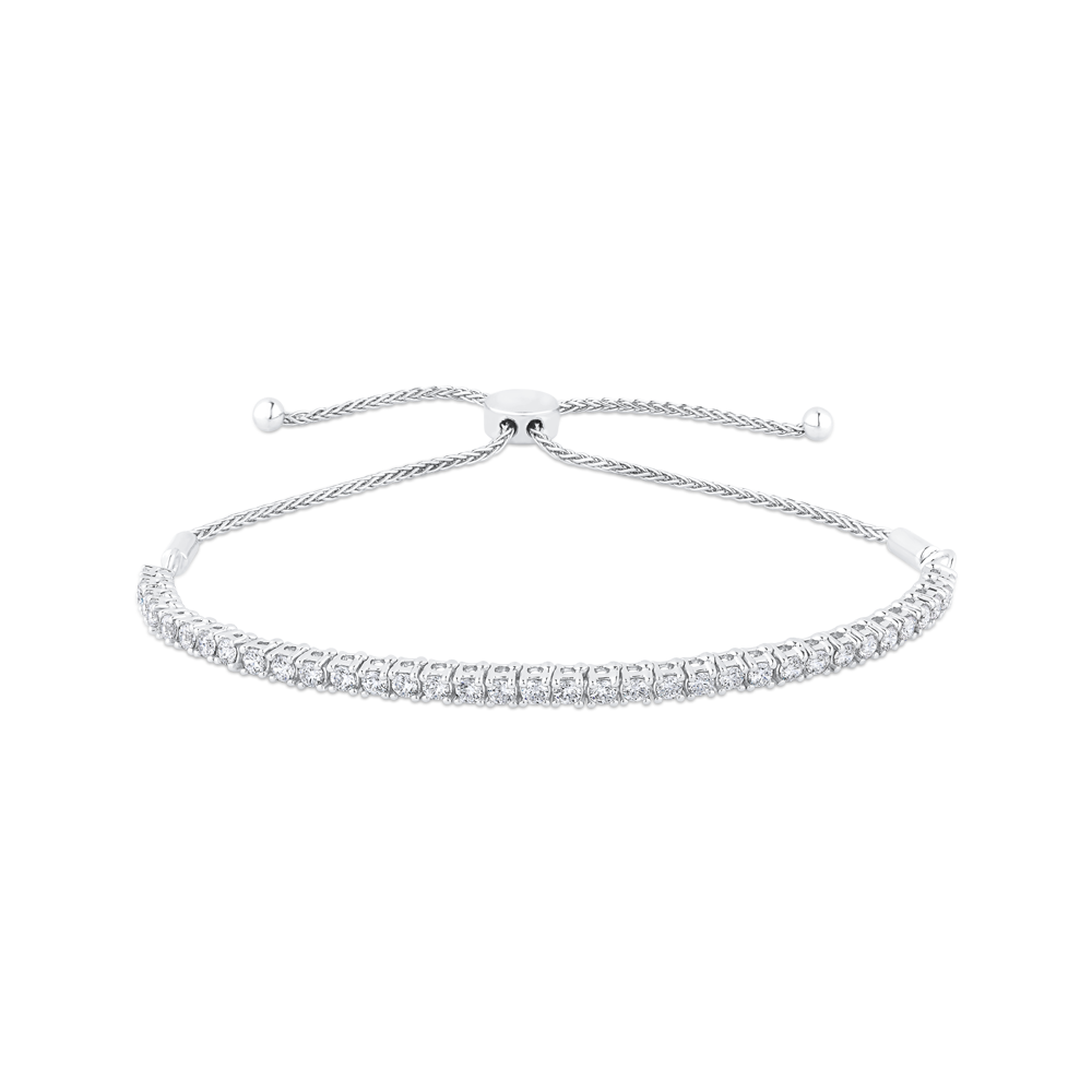 14K White Gold Round White Diamond Bolo Bracelet