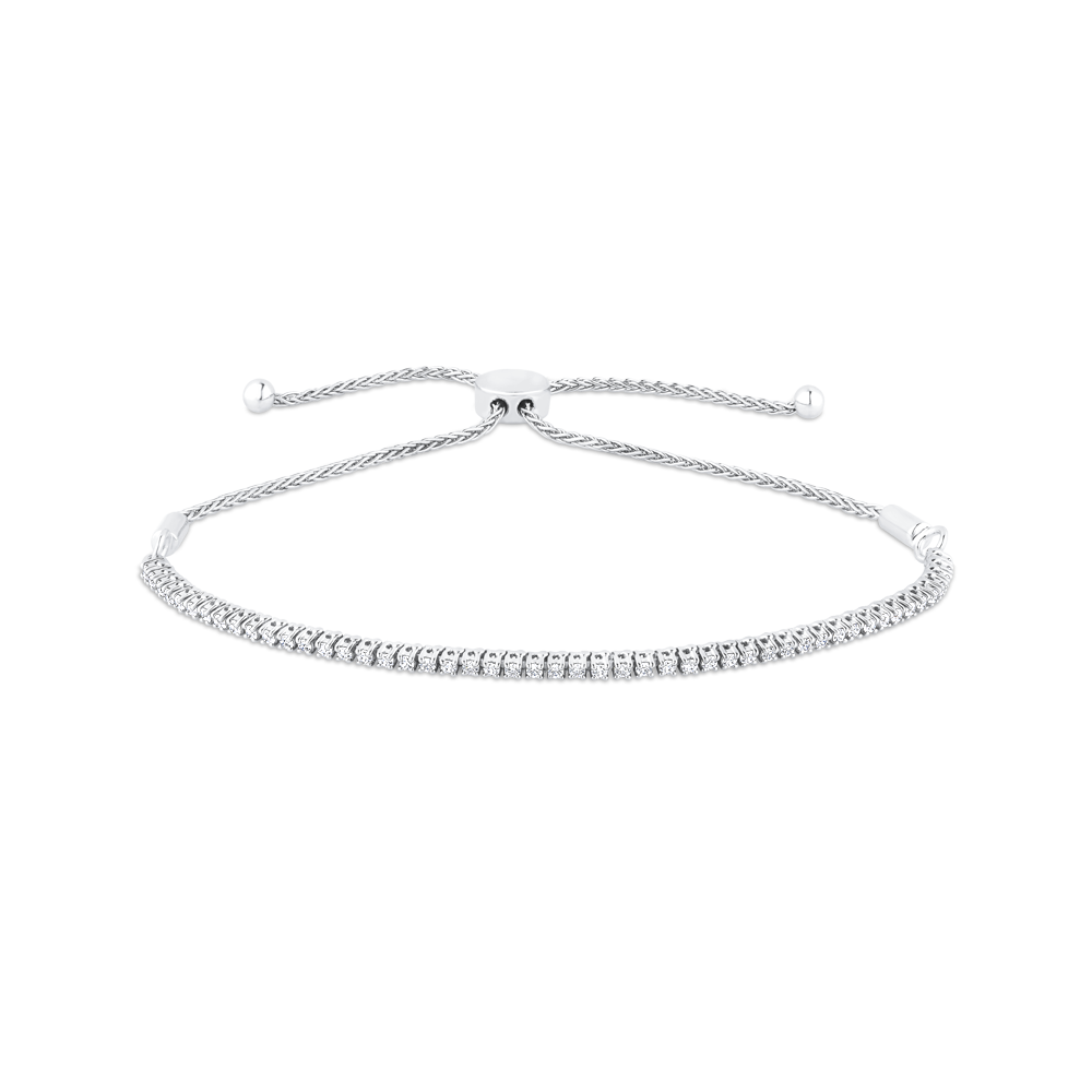 14K White Gold Round White Diamond Bolo Bracelet