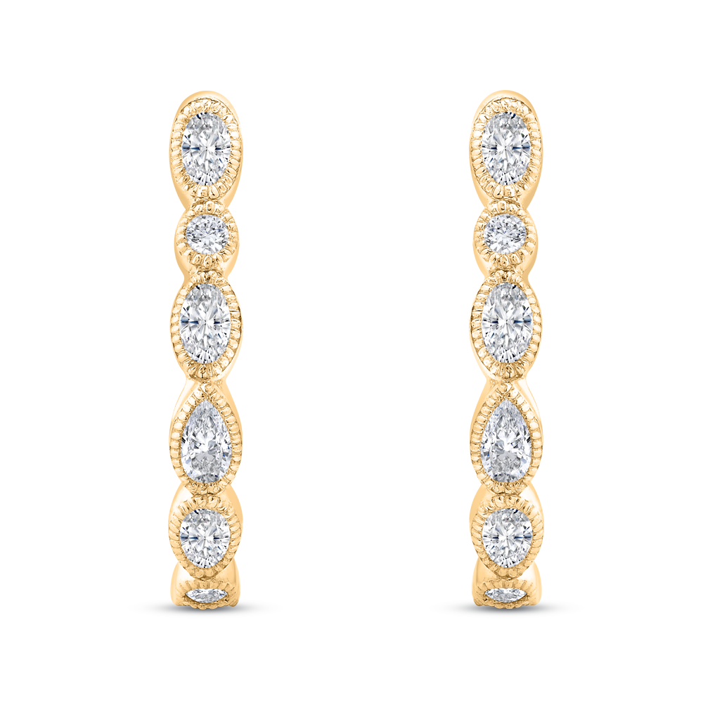 14K Yellow Gold Bezel Setting Diamond Hoop Earrings