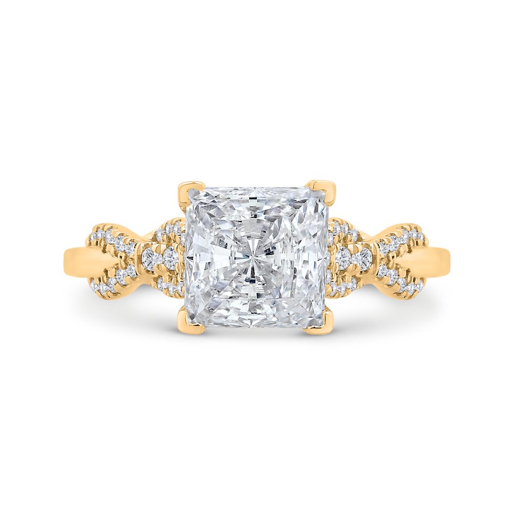 14K Yellow Gold Pave Set Diamond Decoro Solitaire Detail Ring (Semi-Mount)
