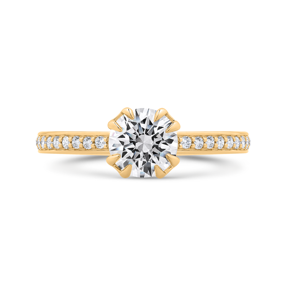 14K Yellow Gold Pave Set Diamond Serenade Solitaire Surprise Stone Ring (Semi-Mount)
