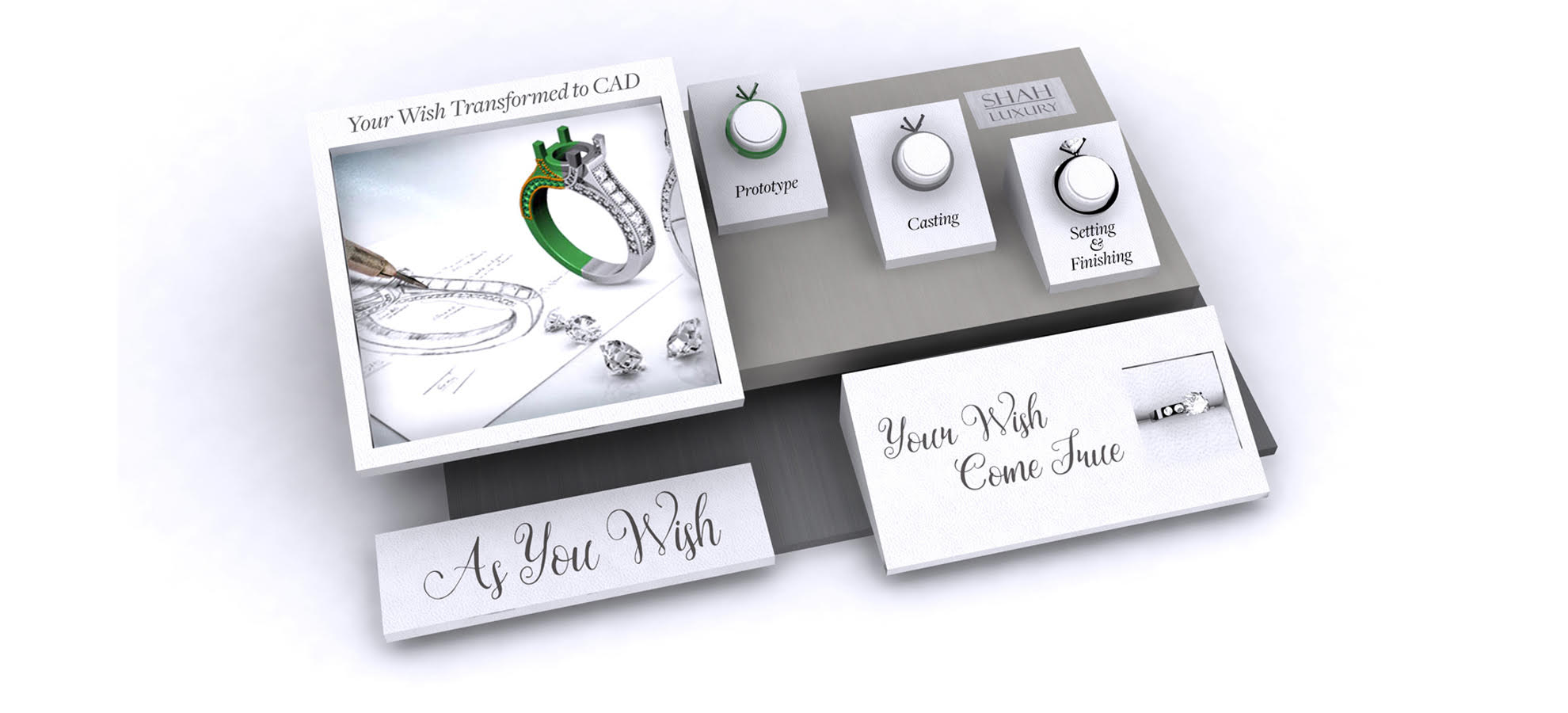 "We look forward to working with you and walking you through the easiest process you could imagine. From start to finish of the approved CAD, you can have your piece in as little as 2 weeks. Shall we get started? Well, "As You Wish"!