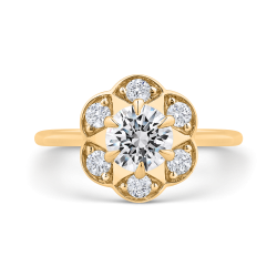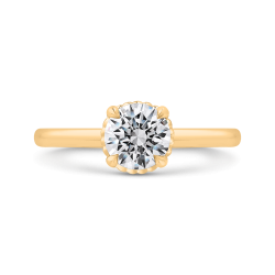 14K Yellow Gold Diamond Stella Solitaire Halo Flow-Through Wedding Ring (Semi-Mount)