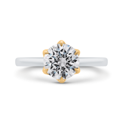 14K Two Tone Gold Diamond Decoro Six-Prong Solitaire Ring (Semi-Mount)