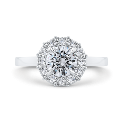 14K White Gold Diamond Perline Solitaire Beaded Halo Engagement Ring (Semi-Mount)
