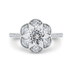 14K White Gold Diamond Decoro Solitaire Detail Engagement Ring (Semi-Mount)