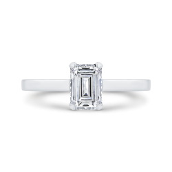 14K White Gold Emerald Cut Diamond Serenade Solitaire Surprise Stone Ring (Semi-Mount)