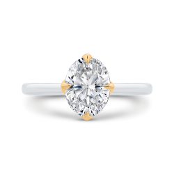 14K Two Tone Gold Oval Cut Diamond Decoro Solitaire Ring (Semi-Mount)