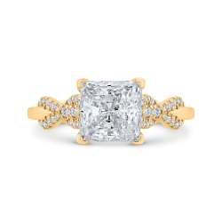 14K Yellow Gold Pave Set Diamond Serenade Solitaire Surprise Stone Ring (Semi-Mount)