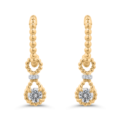 14K Two Tone Gold Diamond Perline Beaded Drop Earrings