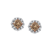 Diamond Halo Earrings with Brown Center Diamond in 10K White Gold (1/2 cttw)