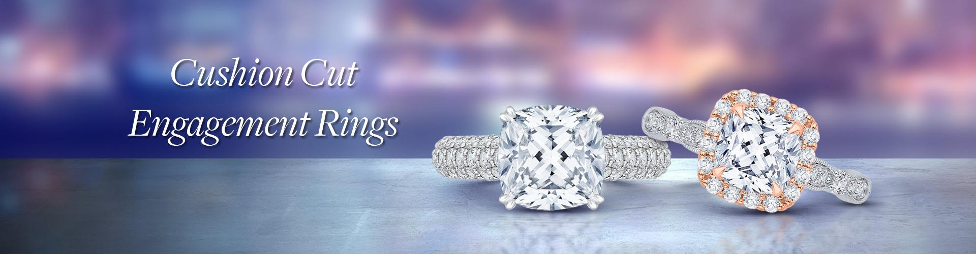 14K Two-Tone Gold Cushion Cut Diamond Solitaire Engagement Ring (Semi-Mount)