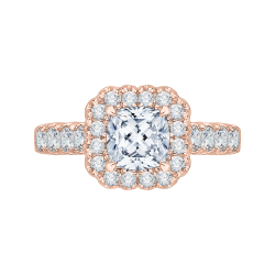 14K Rose Gold Cushion Cut Diamond Halo Engagement Ring (Semi-Mount)