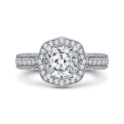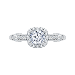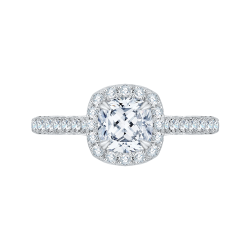 14K White Gold Cushion Diamond Halo Engagement Ring (Semi-Mount)