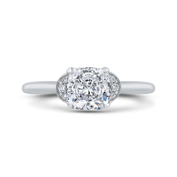 14K White Gold Cushion Cut Diamond Solitaire with Accents Engagement Ring (Semi-Mount)