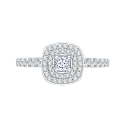 Cushion Diamond Halo Engagement Ring In 14K White Gold