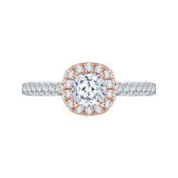 Cushion Diamond Halo Engagement Ring In 14K Two-Tone Gold