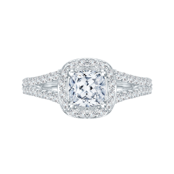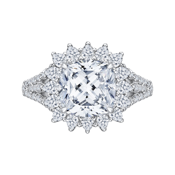 14K White Gold Cushion Diamond Split Shank Engagement Ring (Semi-Mount)