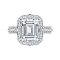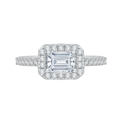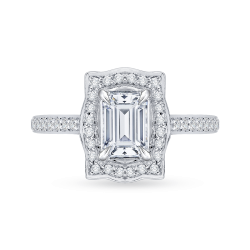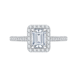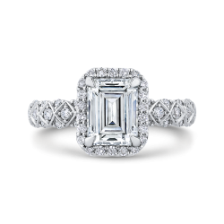 Emerald Cut Diamond Halo Engagement Ring In 14K White Gold (Semi-Mount)