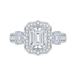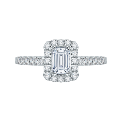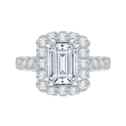 14K White Gold Emerald Cut Diamond Halo Engagement Ring (Semi-Mount)