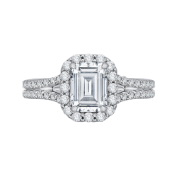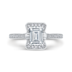 Emerald Cut Diamond Halo Bridal Ring In 14K White Gold (Semi-Mount)