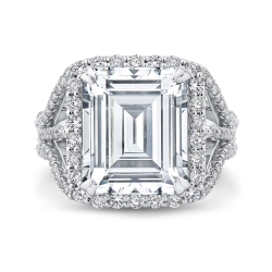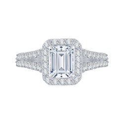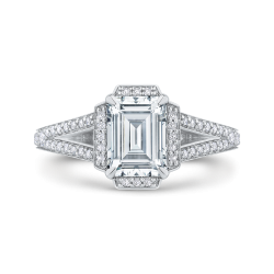 14K White Gold Emerald Cut Diamond Halo Engagement Ring with Split Shank (Semi-Mount)