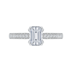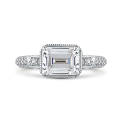 Emerald Cut Diamond Solitaire with Accents Engagement Ring In 14K White Gold (Semi-Mount)