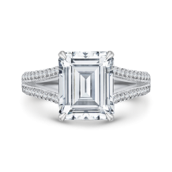 14K White Gold Emerald Cut Diamond Bridal Engagement Ring with Split Shank (Semi-Mount)
