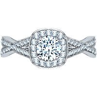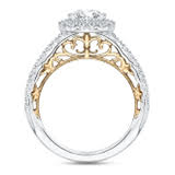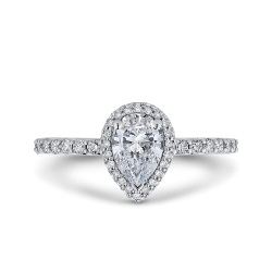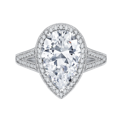 Pear Diamond Halo Engagement Ring In 14K White Gold with Split Shank (Semi-Mount)