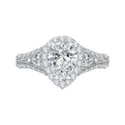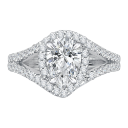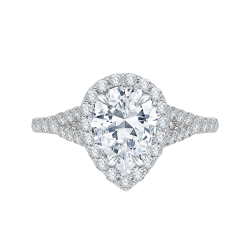 14K White Gold Pear Diamond Halo Engagement Ring with Split Shank (Semi-Mount)