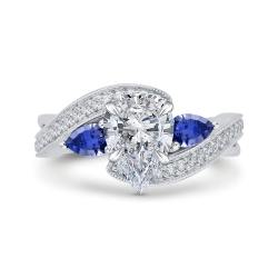 14K White Gold Pear Diamond Engagement Ring with Sapphire (Semi-Mount)