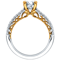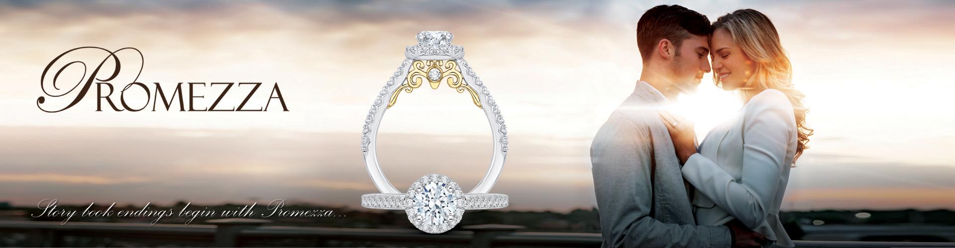 An elegant collection high-lighting current trends and popular bridal designs.  Each breathtaking design is carefully completed with a center dia-mond, meticulously crafted with reduced gem weights, address-ing the more price-conscious customer.  With an uncompro-mising attention to detail and workmanship, each PROMEZZA piece is given a promising value that emanates beyond price.