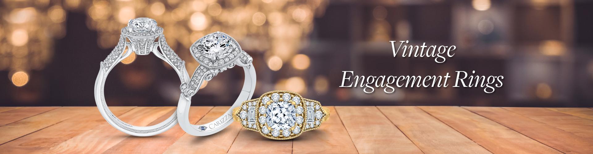 14K White Gold Round Cut Diamond Vintage Engagement Ring
