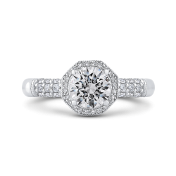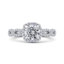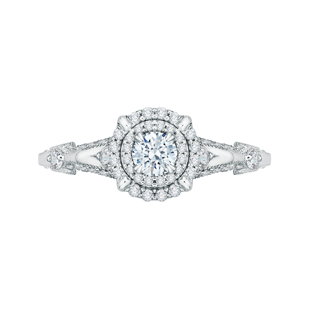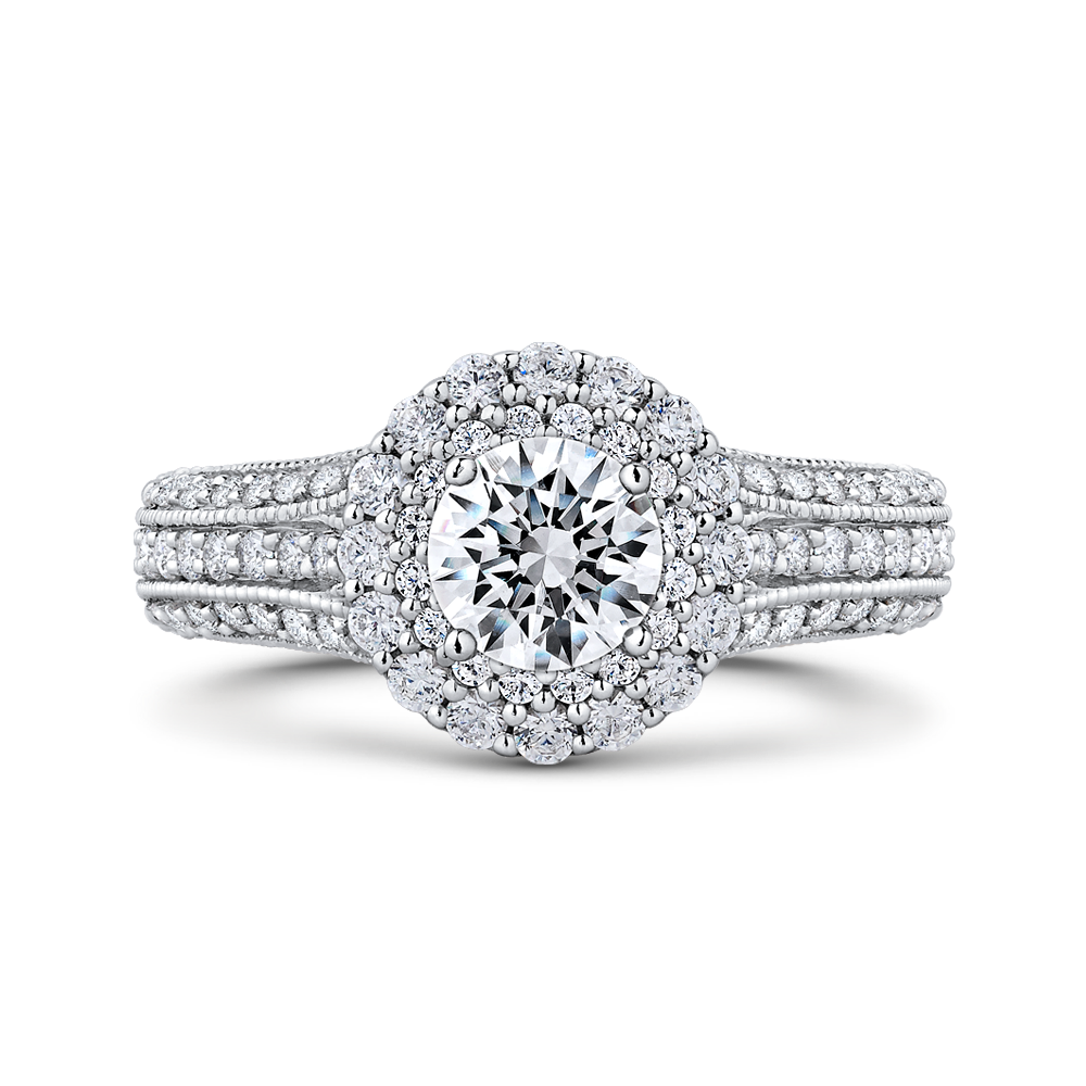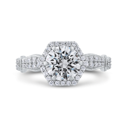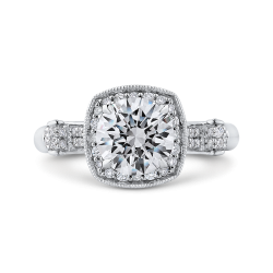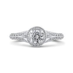 Round Diamond Halo Vintage Engagement Ring In 14K White Gold (Semi-Mount)